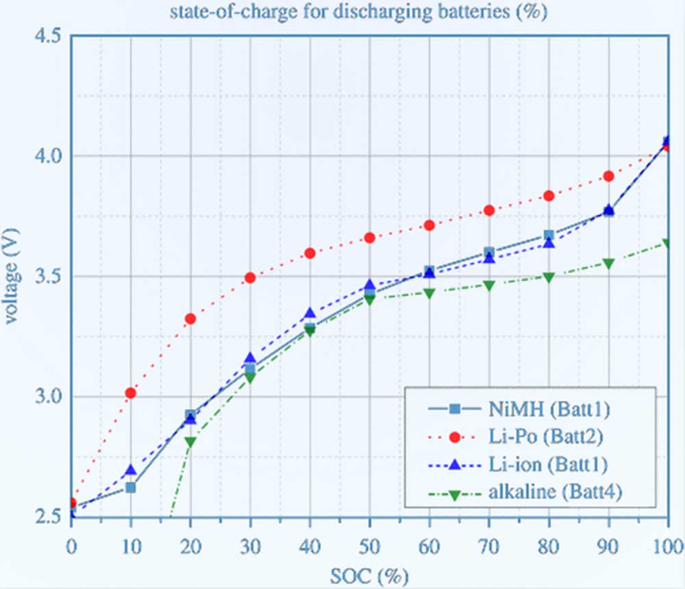 电压是正极和负极之间的电位差。如前所述,它也会影响电池的SOC。SOC或剩余容量是以电池单元的电压为起点来确定的。